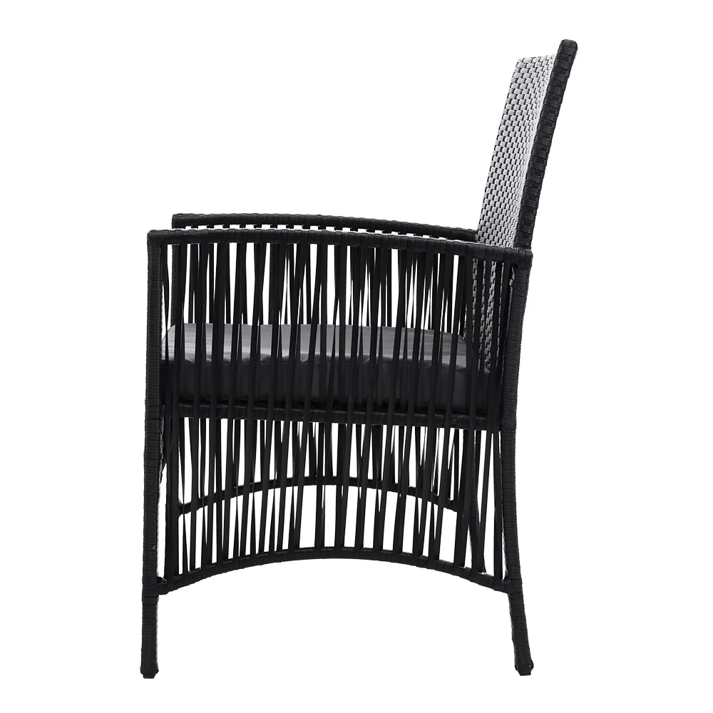 Gardeon 3PC Outdoor Bistro Set: UV-Resistant PE Wicker, Galvanised Steel, 5cm Cushions, Tempered Glass Table, Black