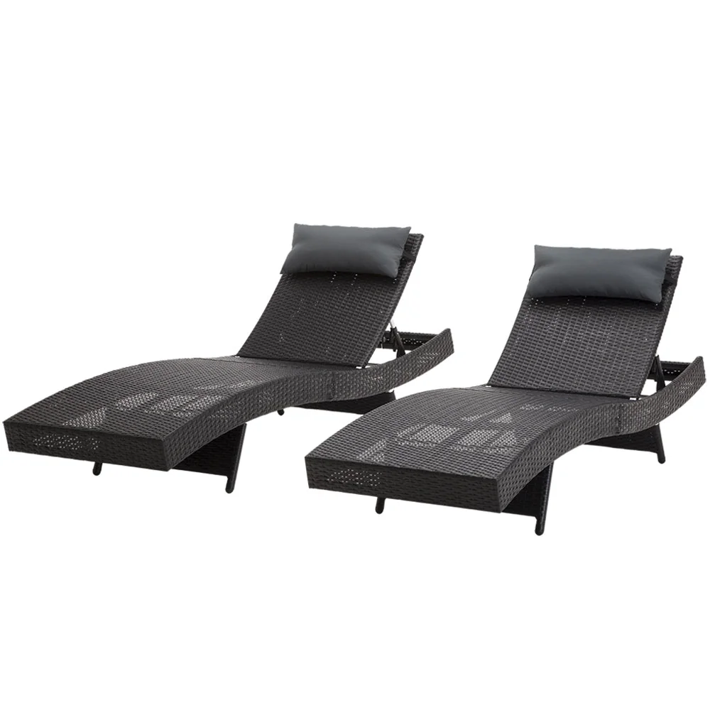 Gardeon 2PC Sun Lounge Set - Black Wicker, Adjustable Backrest, UV-Resistant, 13cm Headrest, Aluminium Frame, 190cm