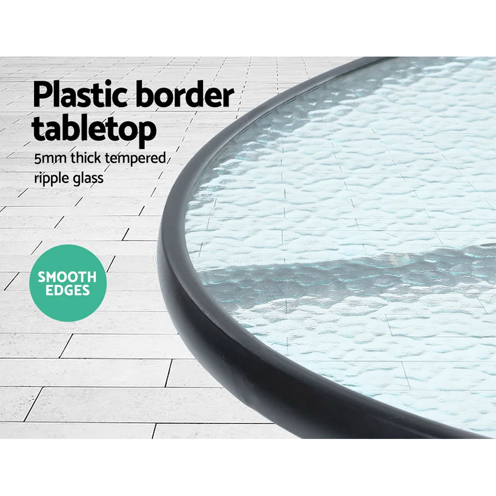 Elevate your outdoor experience with the Gardeon 3PC Bistro Set. Perfect for intimate gatherings or solo relaxation, this chic set includes a tempered glass-top table and two PE wicker chairs, designed for both style and durability. Enjoy comfort with high-density foam cushions, and easy upkeep with removable covers. Its UV and weather-resistant build ensures longevity, while the parasol hole and non-slip feet add practicality. Ideal for any patio, deck, or indoor space, this set is a must-have.