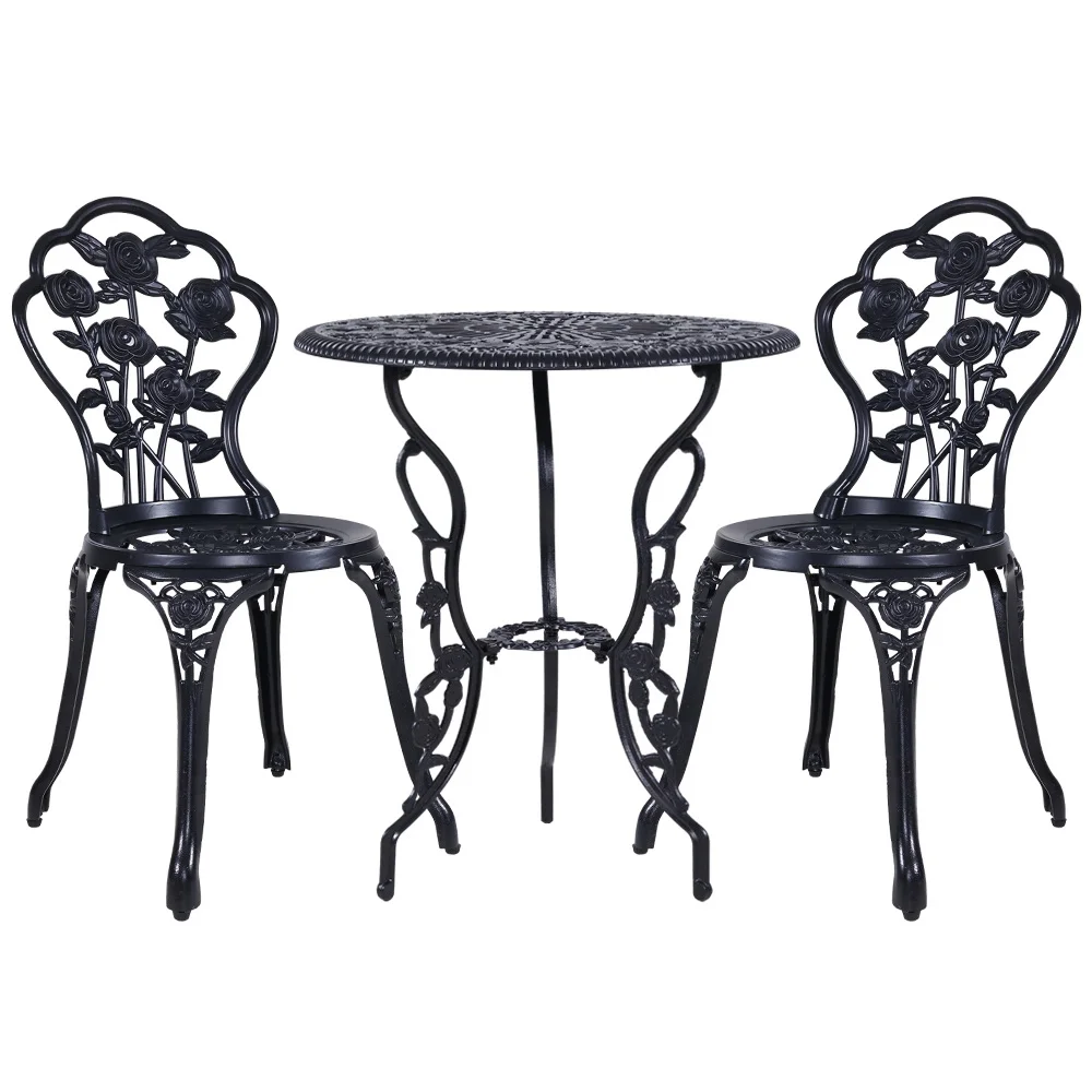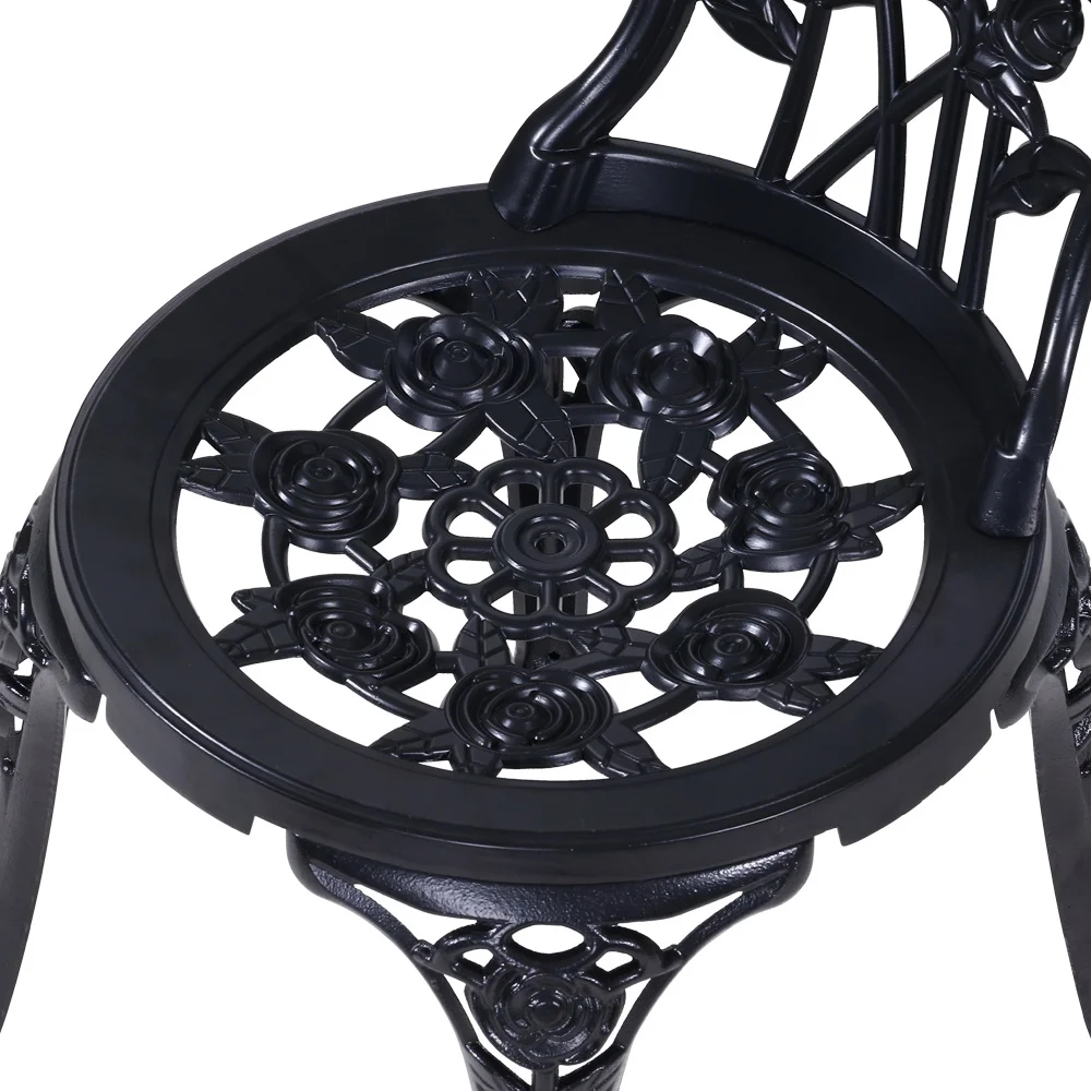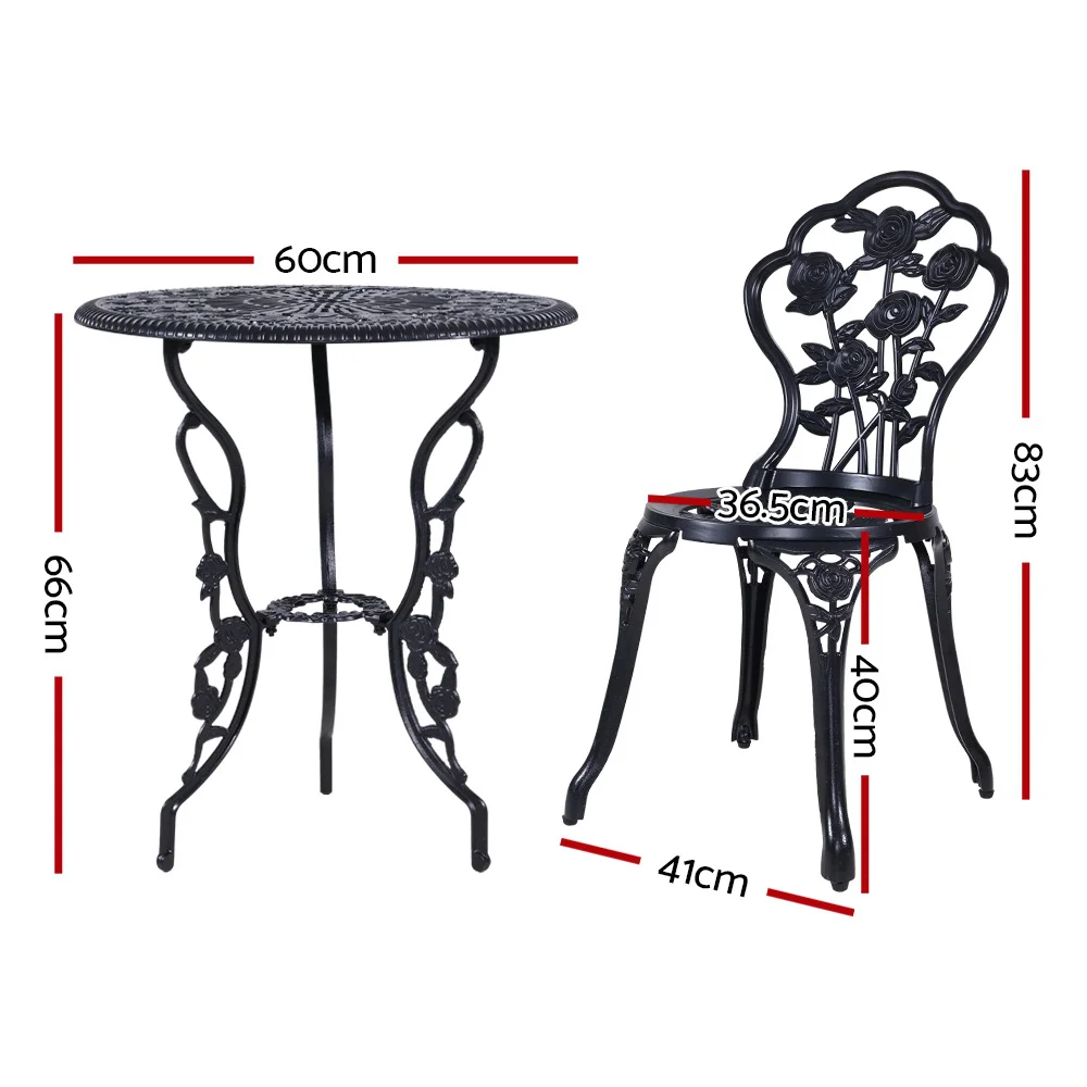 Gardeon 3PC Cast Aluminium Outdoor Bistro Set - Vintage Black, Weather-Resistant, with Parasol Hole, Easy Assembly