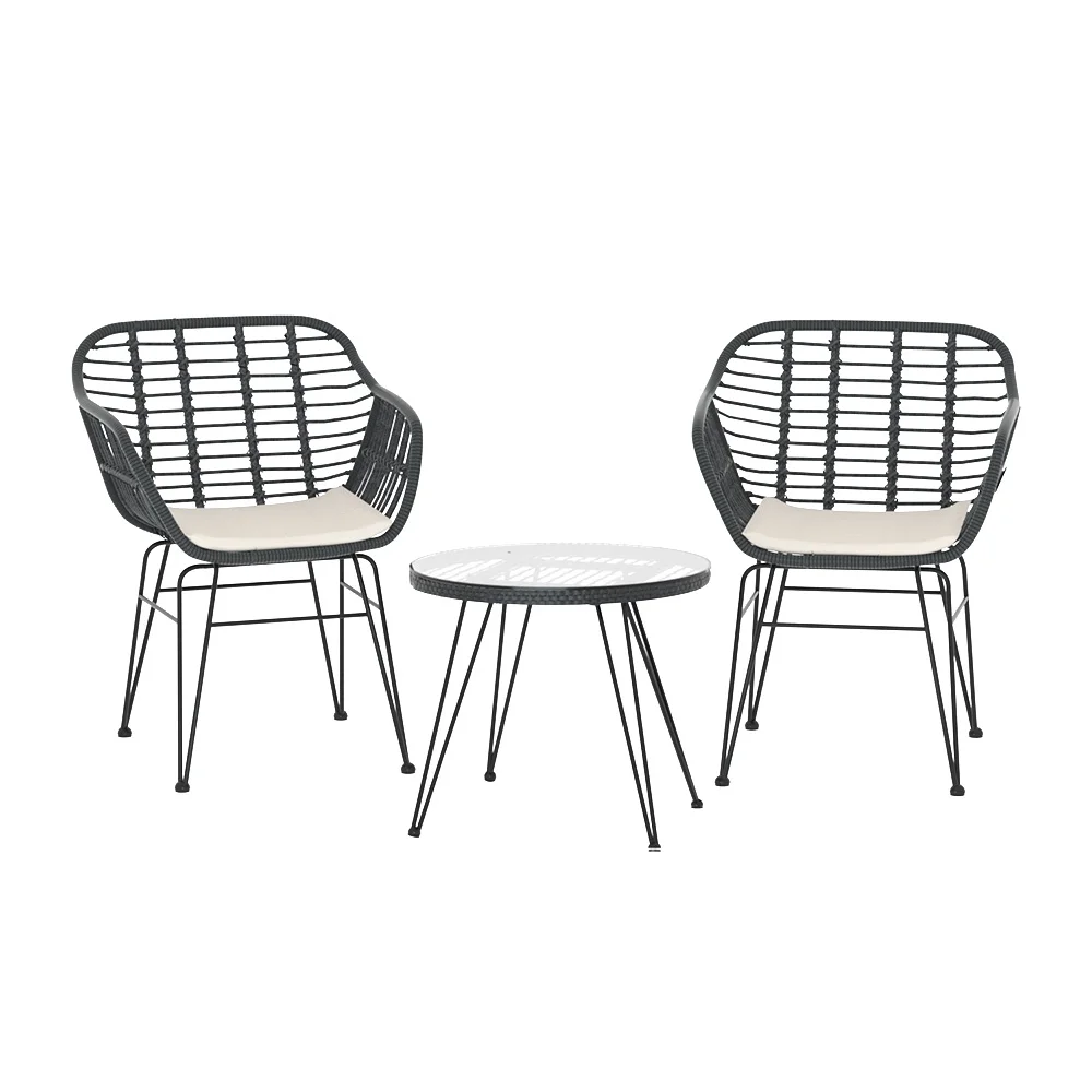 Gardeon 3PC Outdoor Bistro Set: Stylish PE Wicker Chairs, Coffee Table, Weather-Resistant Cushions, Easy Assembly
