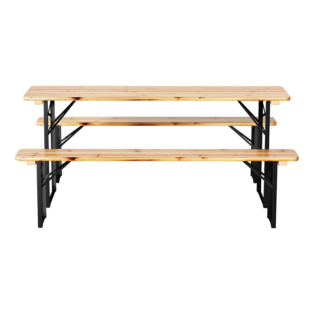 Gardeon 3pc Outdoor Furniture Set - Fir Wood Table & Benches, Rust-Resistant, Foldable, Seats 6, 1-Year Warranty