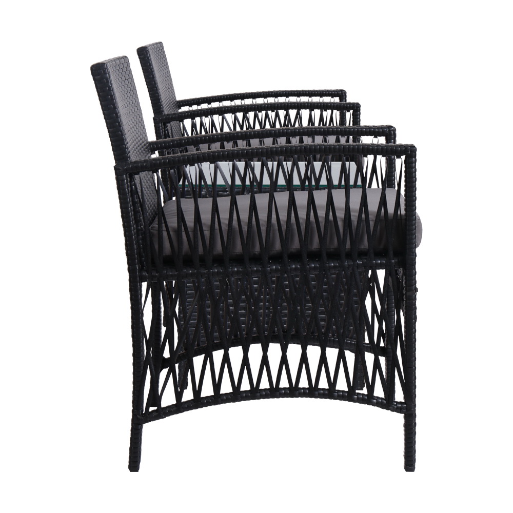 Gardeon 3PC Outdoor Bistro Set: UV-Resistant PE Wicker, Galvanised Steel, 5cm Cushions, Tempered Glass Table, Black