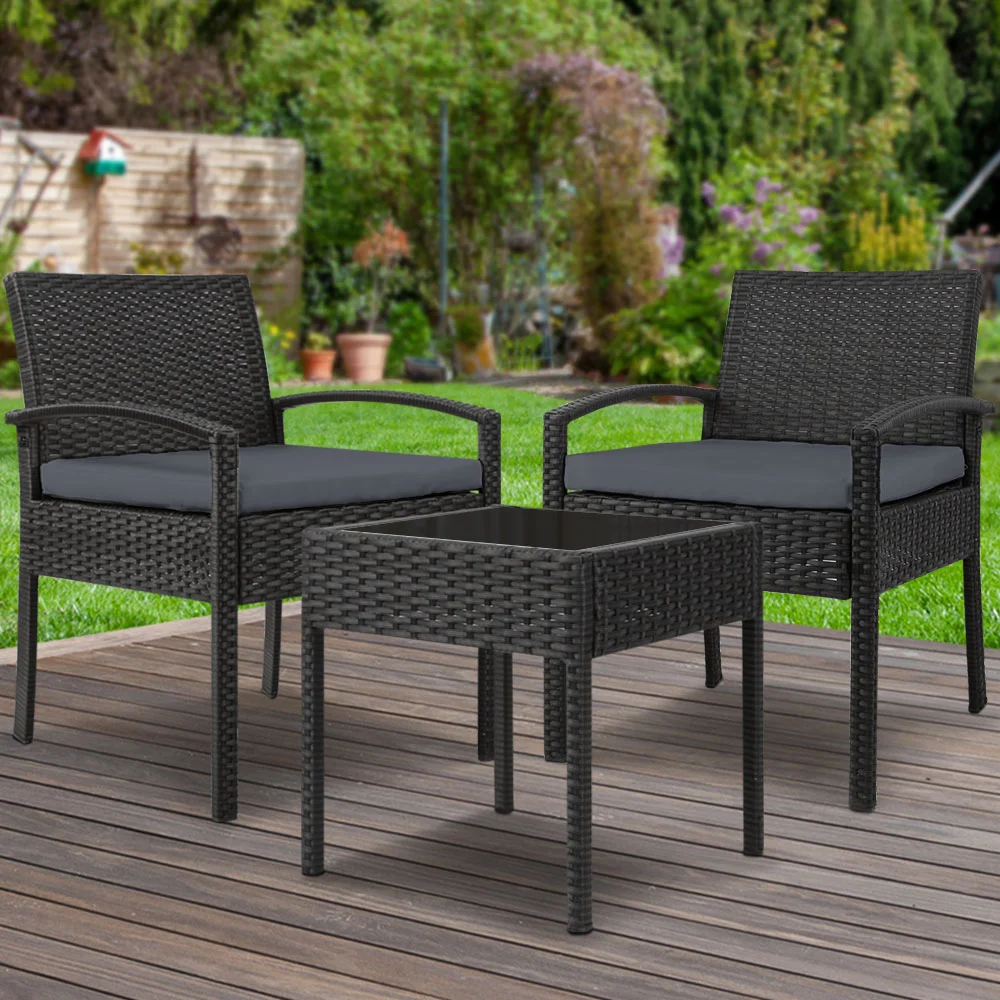 Gardeon 3PC Outdoor Bistro Set: Stylish PE Wicker Chairs, Coffee Table, Weather-Resistant Cushions, Easy Assembly