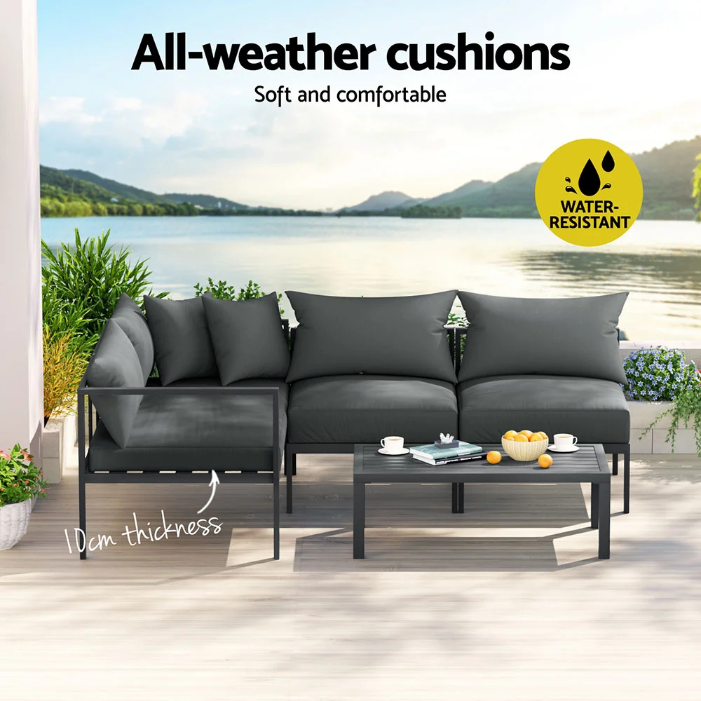 Gardeon 4-Seater Aluminium Patio Sofa Set, Charcoal – Weather-Resistant, Easy Assembly, Outdoor Furniture, 4PC