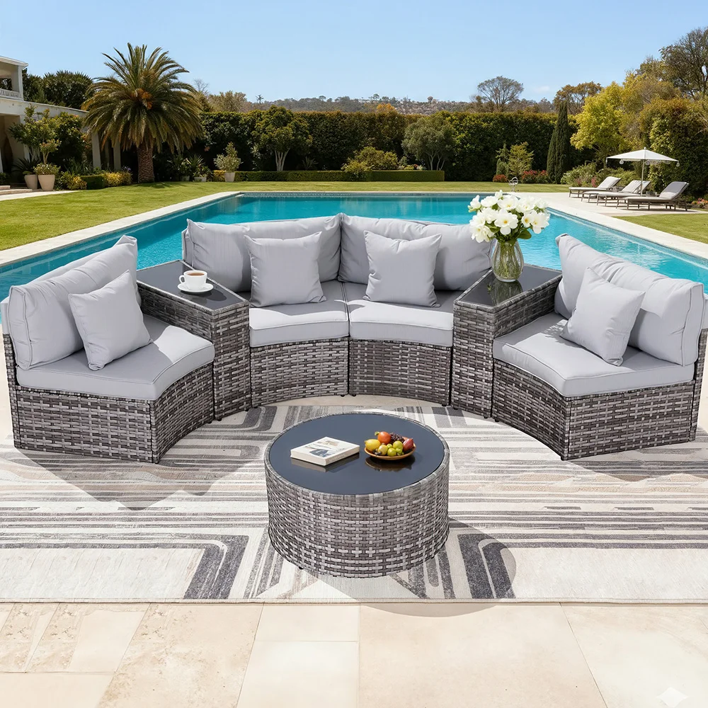 Gardeon 9-Seater Outdoor Dining Sofa Set - Mixed Grey Wicker, Steel Frame, UV & Weather Resistant, Cushioned Comfort