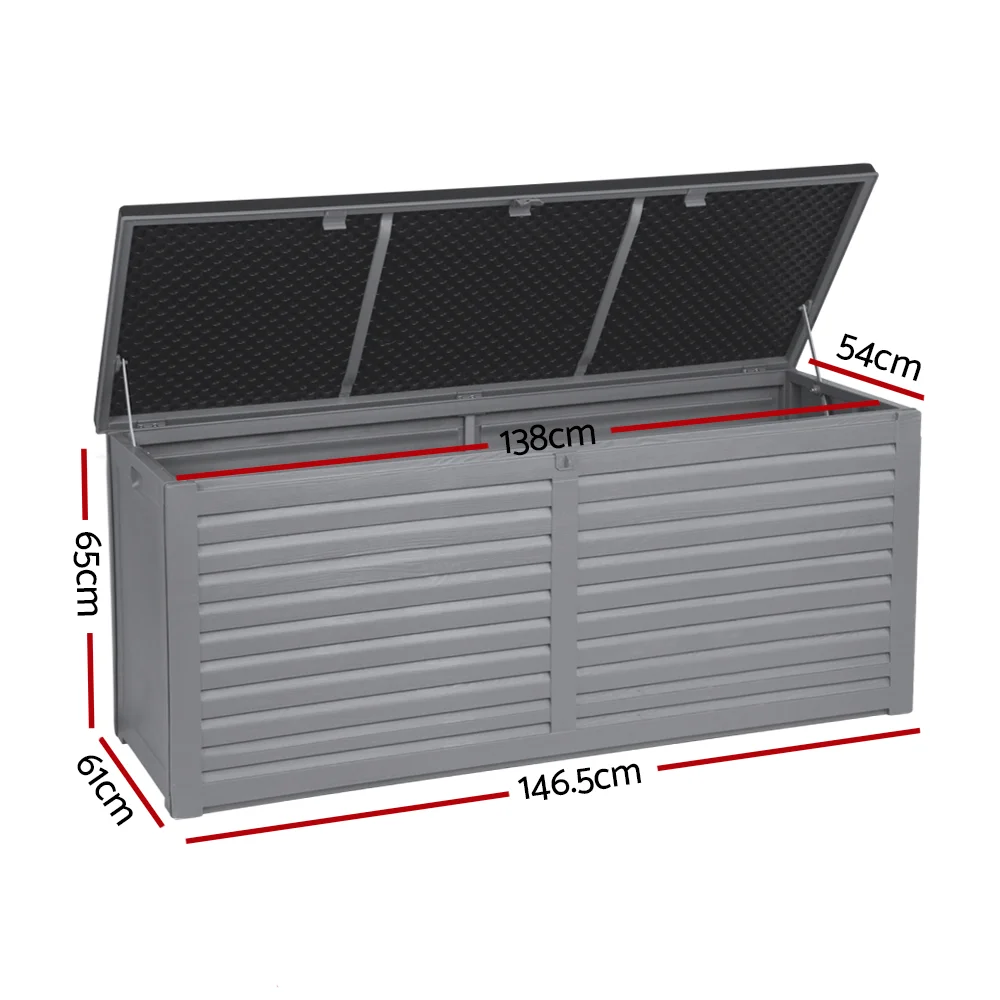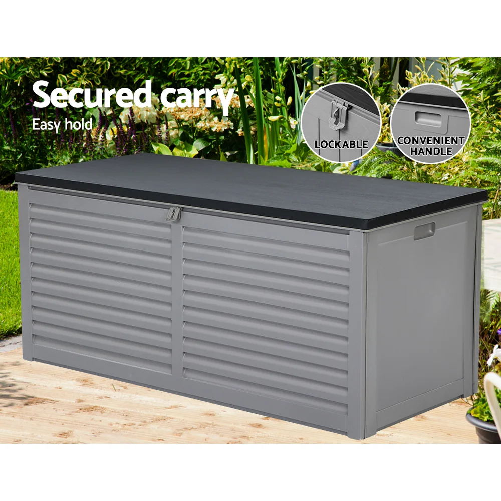 Gardeon 490L Lockable Outdoor Storage Box - Weather-Resistant PP, Bench Seat, Ideal for Tools & Toys, Black/Grey
