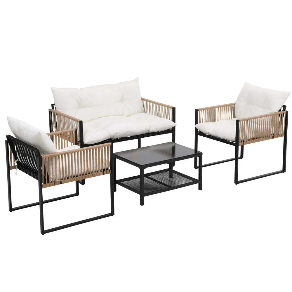 Gardeon 4-Piece Outdoor Sofa Set with Rattan Weave, Cushions, and Glass Table - UV-Resistant, Perfect for Patio & Garden