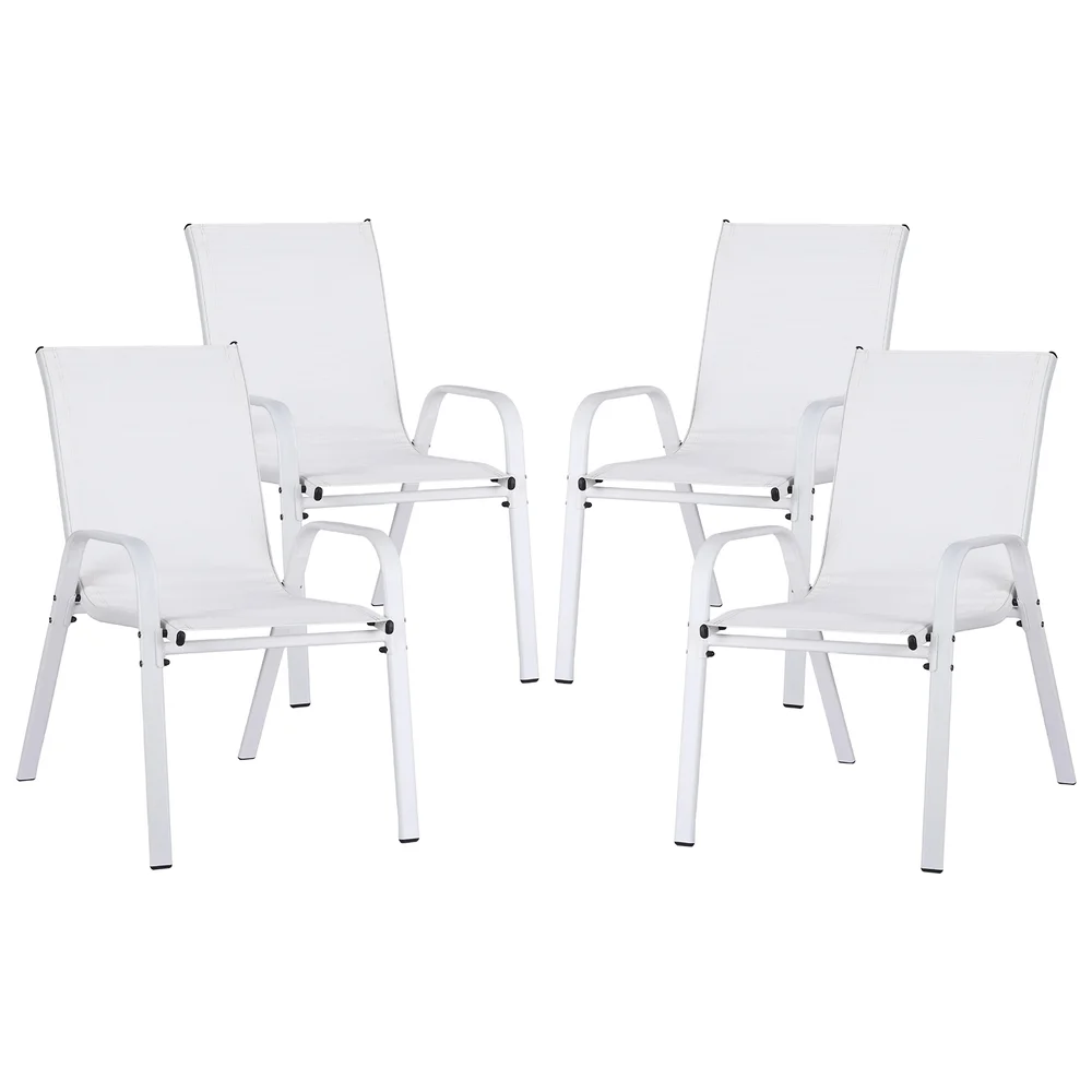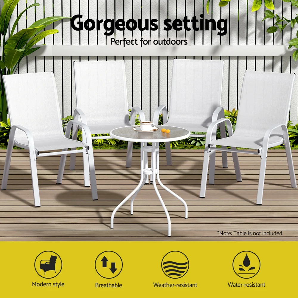 Gardeon 4PC Outdoor Stackable Dining Chairs, White - Weather-Resistant, Steel Frame & Textilene Fabric, 56x70x90cm
