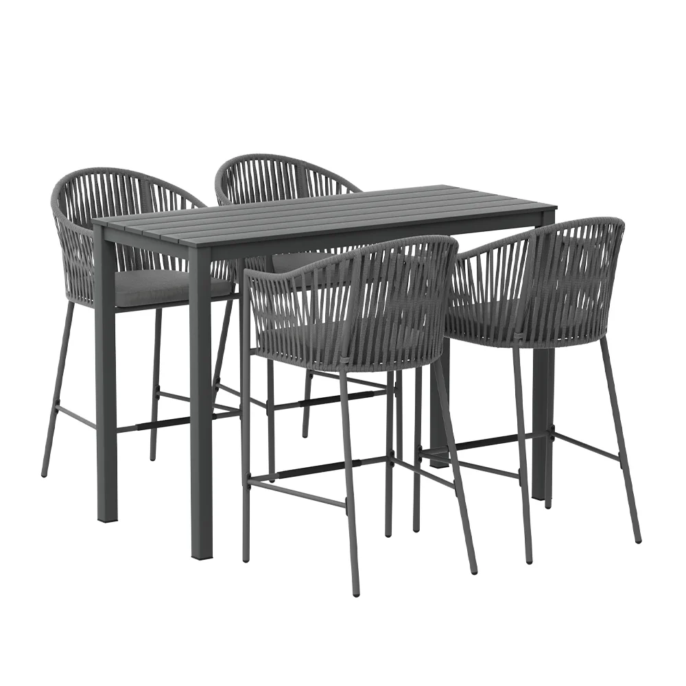 Gardeon 5-Piece Outdoor Bar Set | Handwoven Rope Chairs & Powder-Coated Steel Table | Water-Resistant Cushions | Seats 4