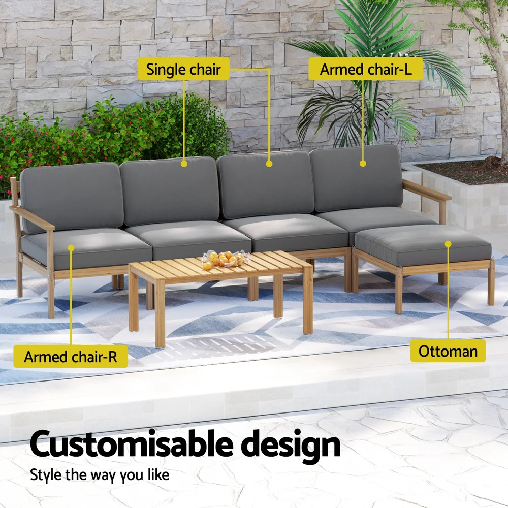 Gardeon 5-Seater Outdoor Wooden Sofa Set 6 Piece Lounge Setting with Coffee Table, Water-Resistant Cushions, Oak Finish