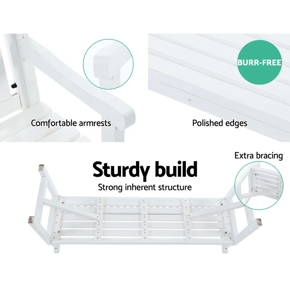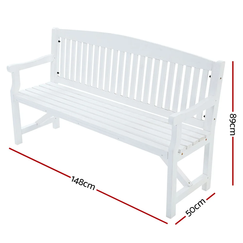 Gardeon 5FT White Wooden Garden Bench, 3-Seater Patio Furniture, Durable Fir Wood, 360kg Capacity, Weather-Resistant