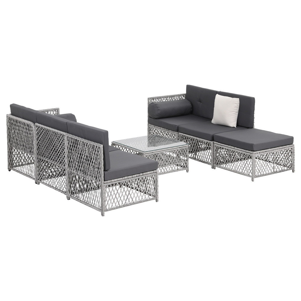 Gardeon 7 Piece Outdoor Sofa Set, 6 Seater Garden Lounge, PE Rattan Patio Furniture with Cushions, Table Included