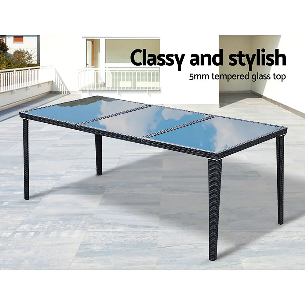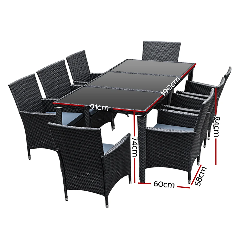 Gardeon 9-Piece Outdoor Dining Set with Black PE Rattan, Aluminium Frame, 5mm Glass Table, and Water-Resistant Cover