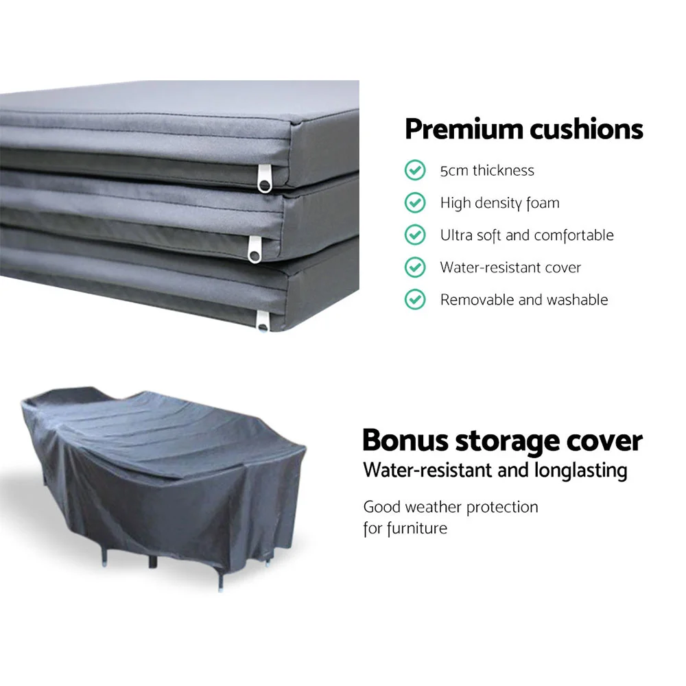 Gardeon Grey Wicker Sun Lounge Day Bed: UV-Resistant, Modular Design, 168x180x145cm, Weatherproof Outdoor Furniture