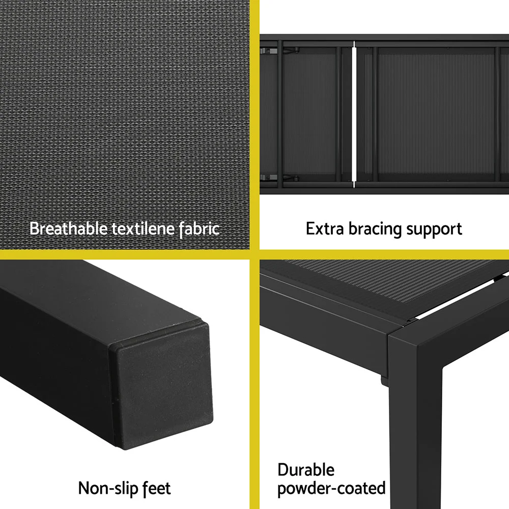 Gardeon Sun Lounger: Black Aluminium Beach Chair with Wheels, Adjustable Backrest, Weather-Resistant, 197cm Long