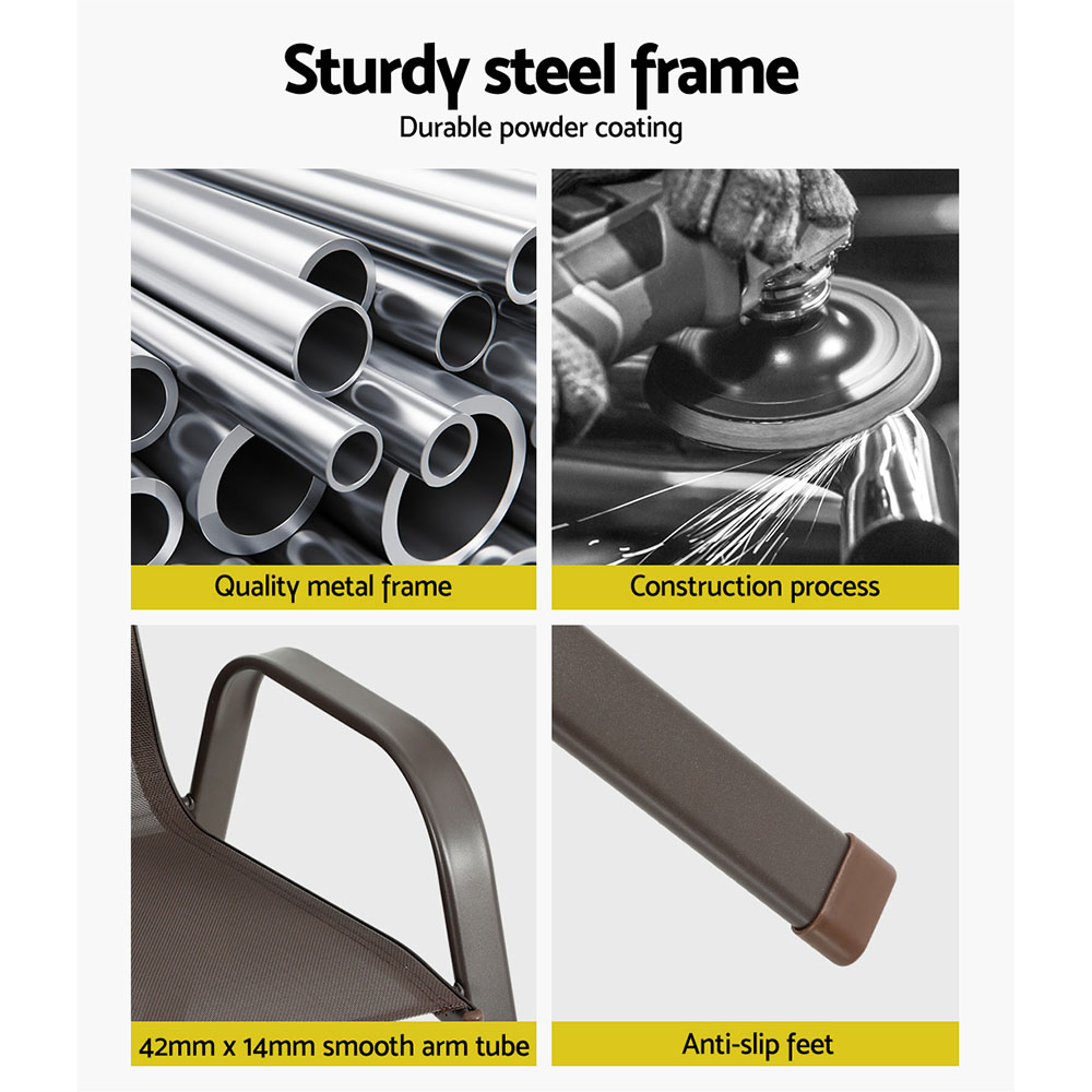 Gardeon 6PC Stackable Outdoor Dining Chairs – Weather-Resistant, Durable Metal Frame, Brown Textilene Fabric