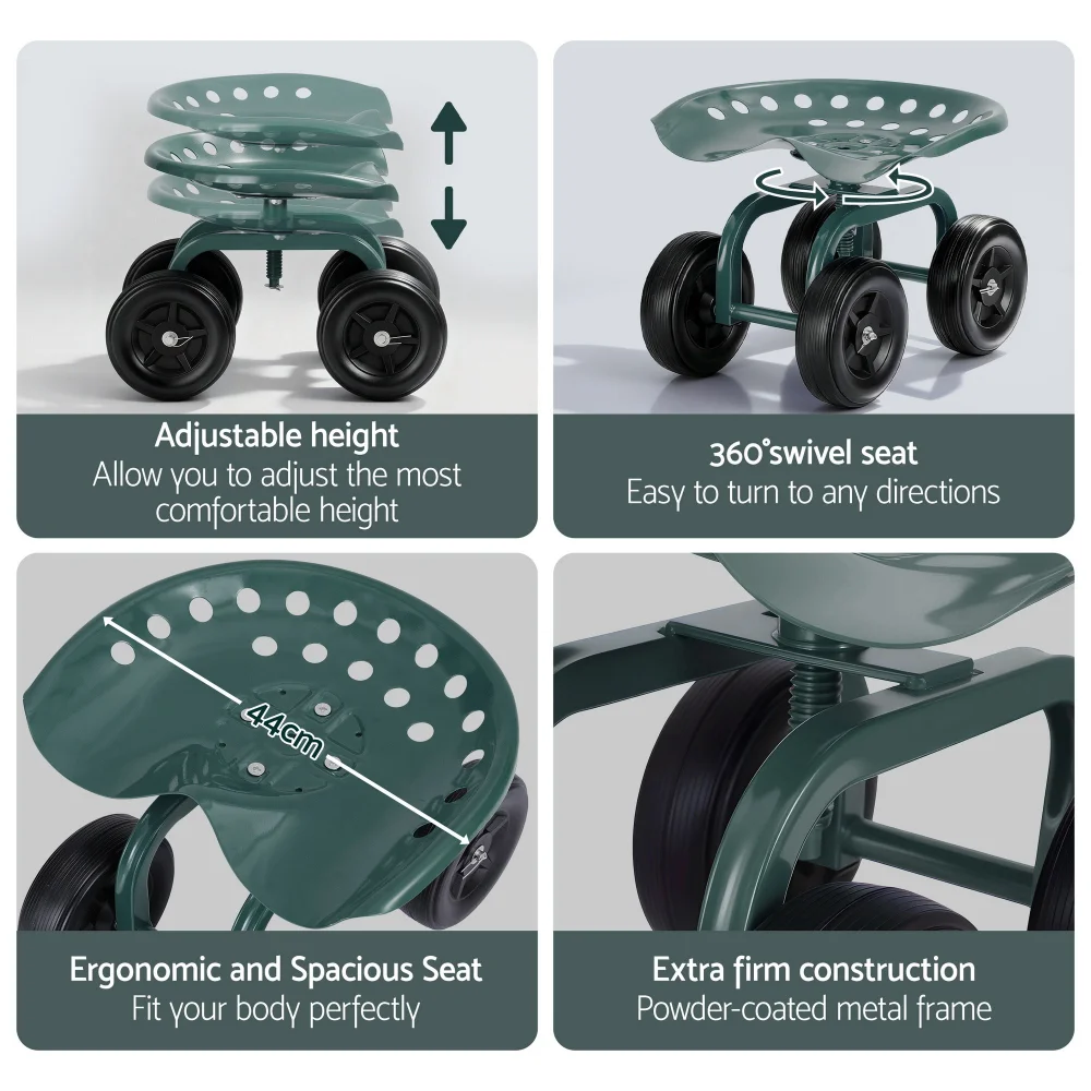 Gardeon 360° Swivel Rolling Garden Seat, Adjustable Height, Heavy Duty Steel Frame, All-Terrain Wheels, 150kg Capacity