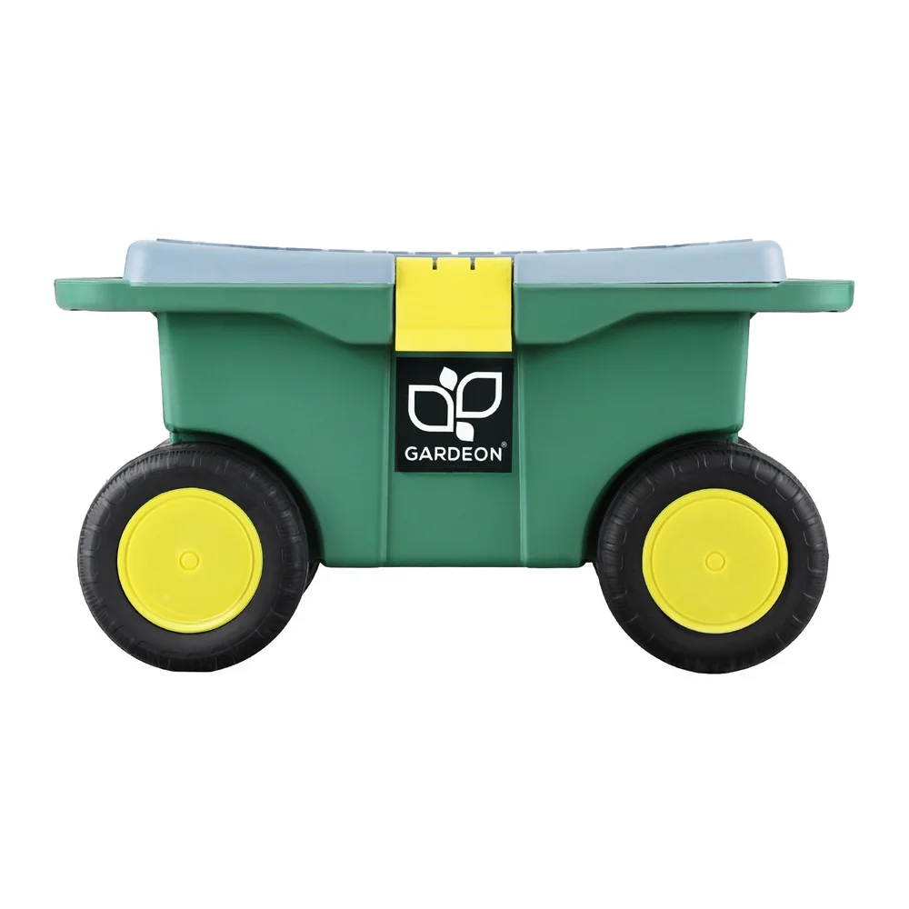Introducing the Gardeon Garden Tool Storage Cart 3-In-1 in vibrant green, a versatile companion for all your gardening needs. This innovative cart functions as a tool cart, storage box, or comfy seat, boasting an impressive 100kg weight capacity. Enjoy ample storage with a removable tray, secure lid, and built-in handles. Its smooth-running wheels offer effortless manoeuvrability and storage. Crafted from durable plastic, this cart is easy to assemble and comes with a 1-year warranty.
