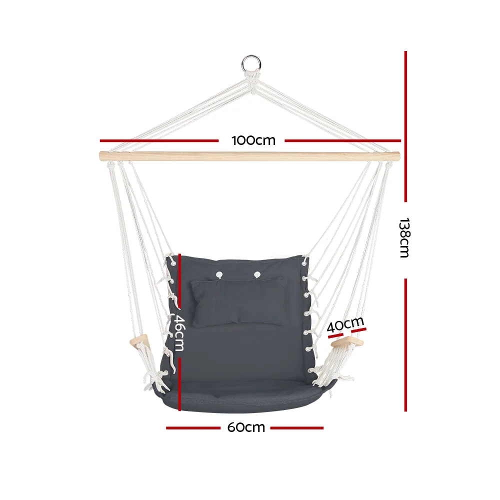 Gardeon Grey Hammock Chair with Armrests - Durable Polyester Cotton, 120kg Capacity, Indoor/Outdoor, Includes Pillow