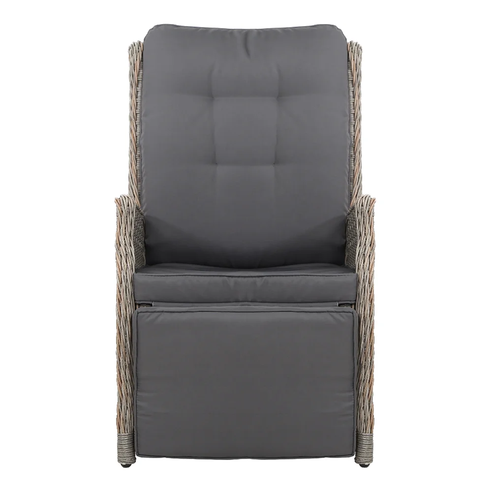 Gardeon Adjustable Wicker Recliner Chair – UV & Weather-Resistant, Steel Frame, High-Density Cushion, 57x65x95cm, Grey