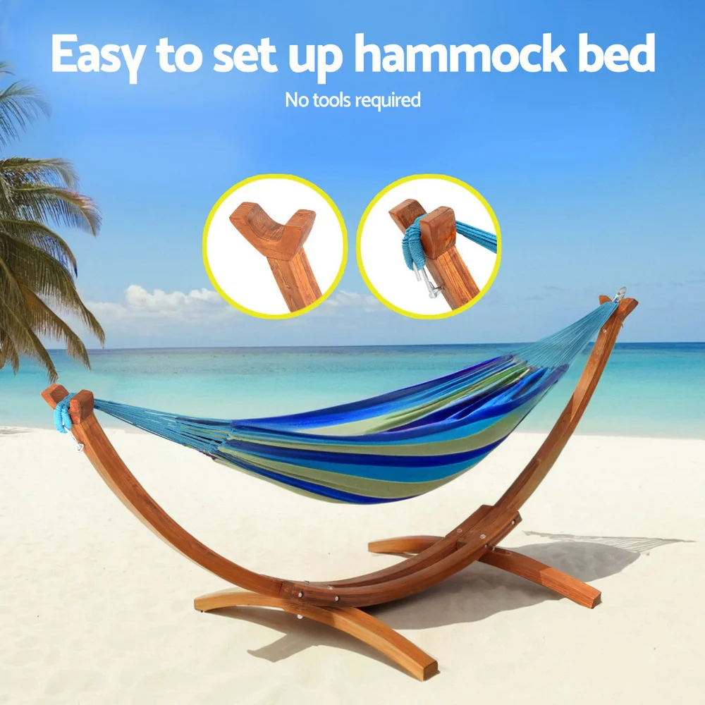 Gardeon Hammock Bed Outdoor Chair - Relaxing Cotton Polyester Swing with Wooden Bars, 245cm Length, 150kg Capacity