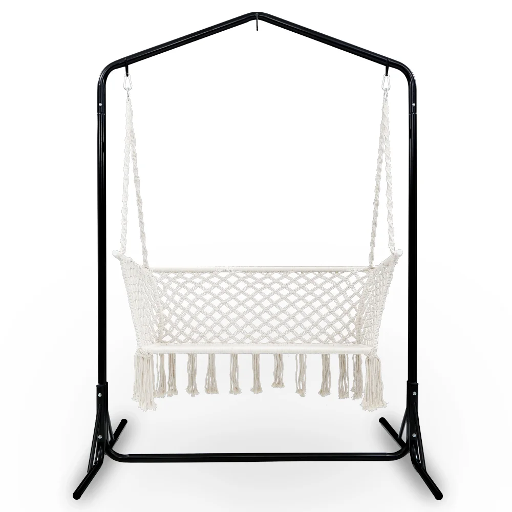 Gardeon Hammock Chair with Stand, Macrame 2-Seater, Cream, 120x70x120cm, Indoor/Outdoor, Handmade Tassels, 200kg