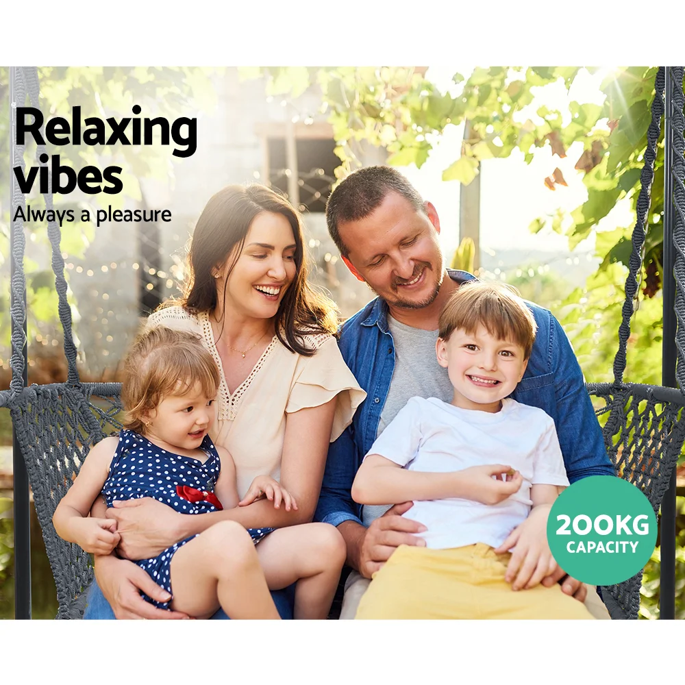 Gardeon 2-Person Hammock Chair: Handmade Grey Cotton-Polyester, with Tassels, Indoor/Outdoor, 200kg Capacity, 120x70cm