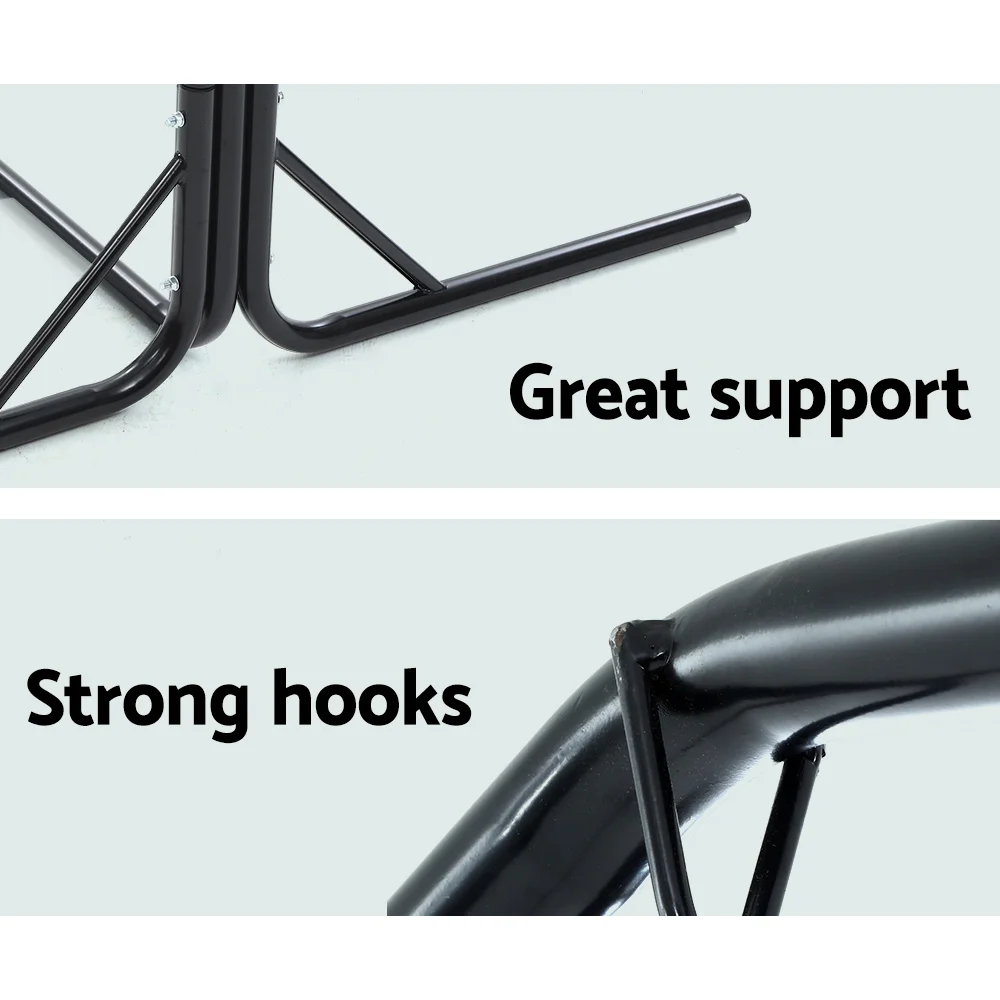 Experience ultimate relaxation with the Gardeon Hammock Chair with Stand. This beautifully handmade 2-seater hammock chair, crafted from a durable polyester-cotton blend and adorned with elegant tassels, offers comfort and style. Paired with a powder-coated steel stand, it supports up to 200kg and is perfect for both indoor and outdoor use. Enjoy lazy days in your backyard, balcony, or living room with this sturdy and chic addition to your leisure time.