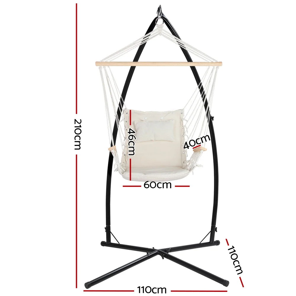 Gardeon Hammock Chair with Steel Stand, Cream, 100x60x138cm - Outdoor/Indoor, Durable Polyester Cotton Blend