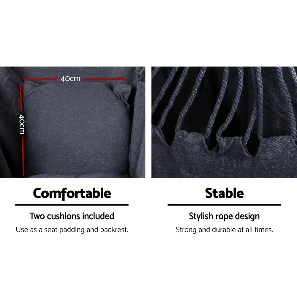 Experience ultimate relaxation with the Gardeon Hammock Chair Outdoor Camping Hanging Set. Perfect for both indoor and outdoor use, this chair features a durable polyester cotton blend fabric and a sturdy timber rail. The powder-coated steel frame ensures weather and rust resistance, supporting up to 180kg. Easy to install with a single attachment point, it offers 360° rotation for versatile enjoyment. Ideal for poolside lounging or cosy corners, indulge in comfort and style with Gardeon.