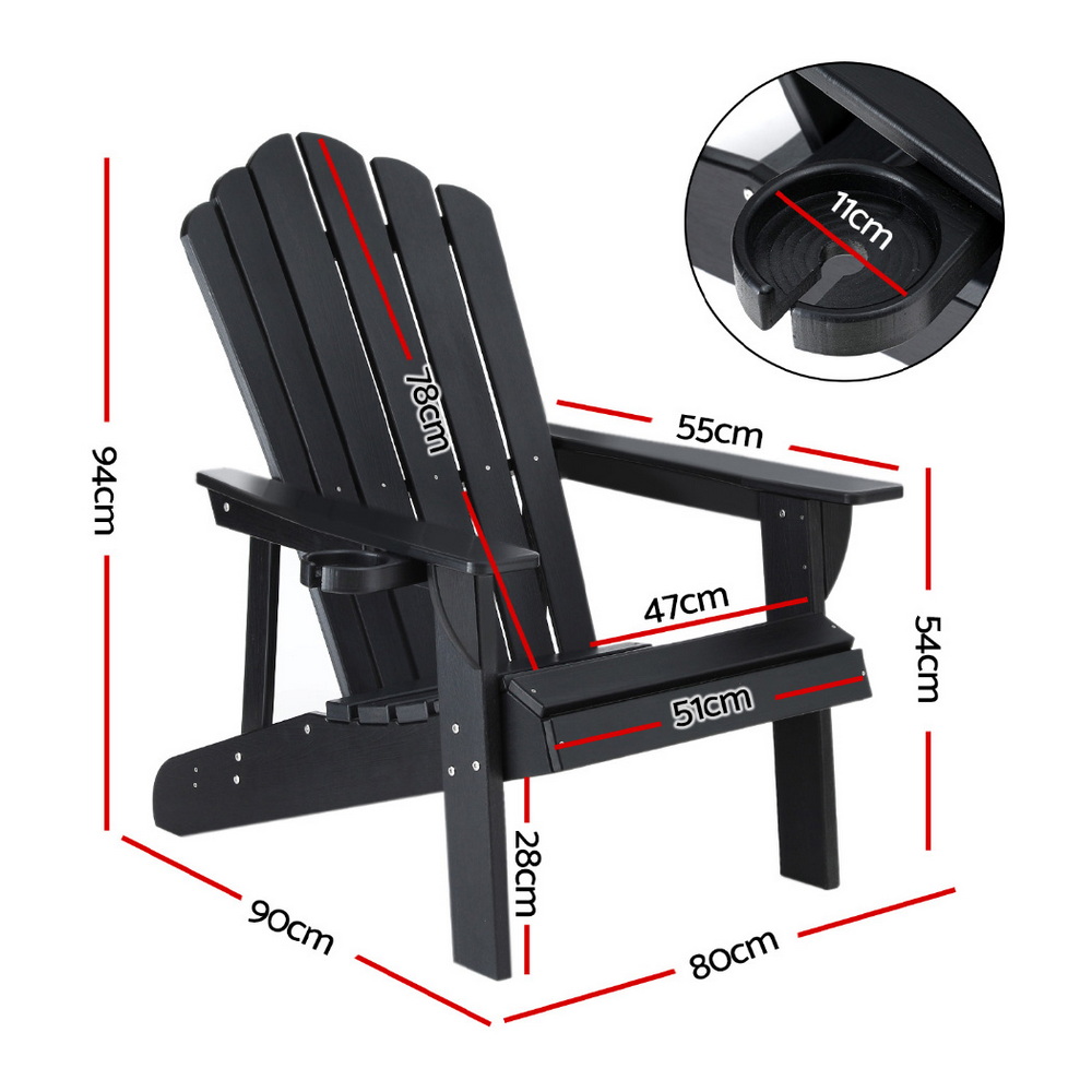 Gardeon Outdoor Black Adirondack Chair HDPE 80x90x94cm, Weather-Resistant, Cup Holder, 170kg Patio Lounge