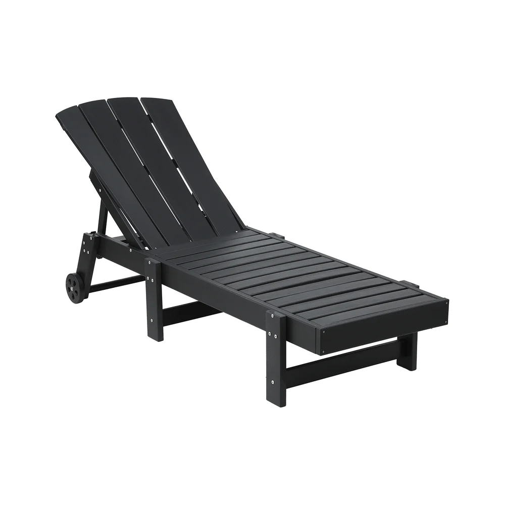 Gardeon Sun Lounge Beach Chair HDPE Adirondack Lounger 4-Position Adjustable Recliner with Wheels, Black, 194cm