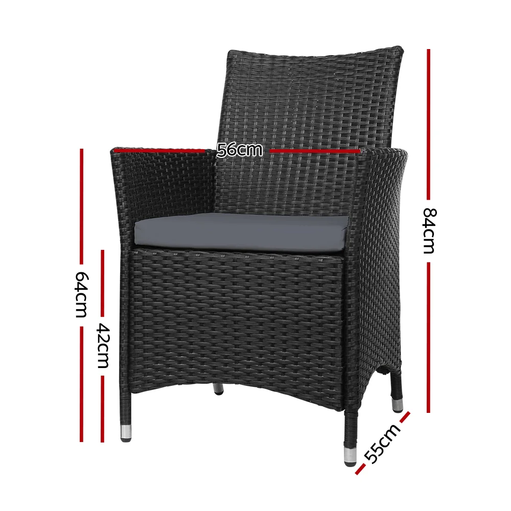 Gardeon Idris 2PC Outdoor Dining Chairs - PE Wicker, Steel Frame, Cushioned Comfort, UV & Weather Resistant, 84cm