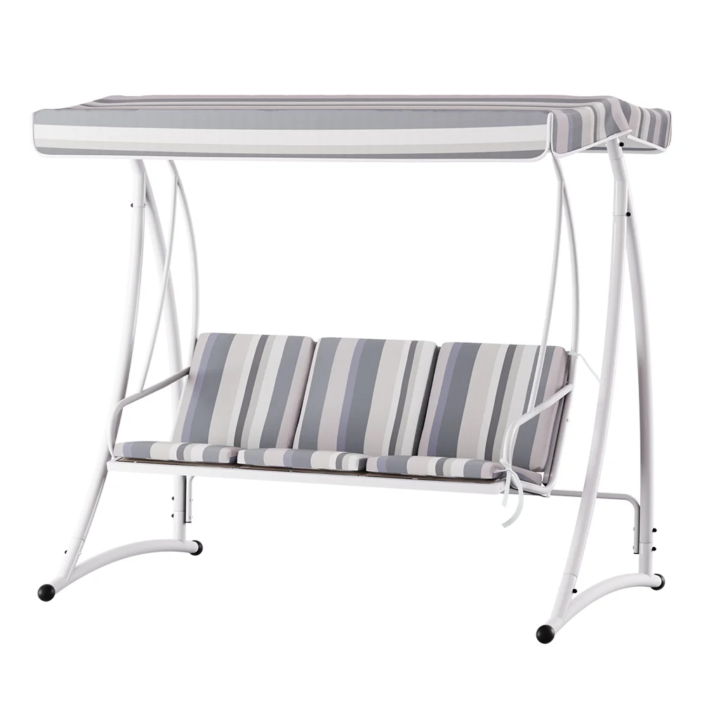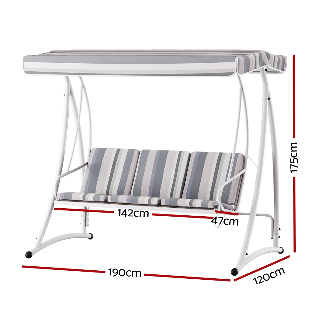 Gardeon Outdoor 3-Seater Swing Chair with Adjustable Canopy, Powder-Coated Steel Frame & Textilene Seat, White/Grey