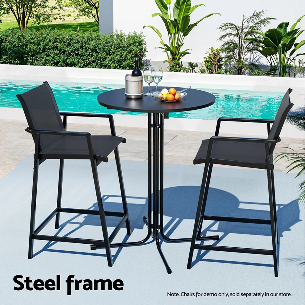 Gardeon Outdoor Bar Table Round Folding 109cm Black Steel Frame Weather-Resistant Desk Patio Furniture