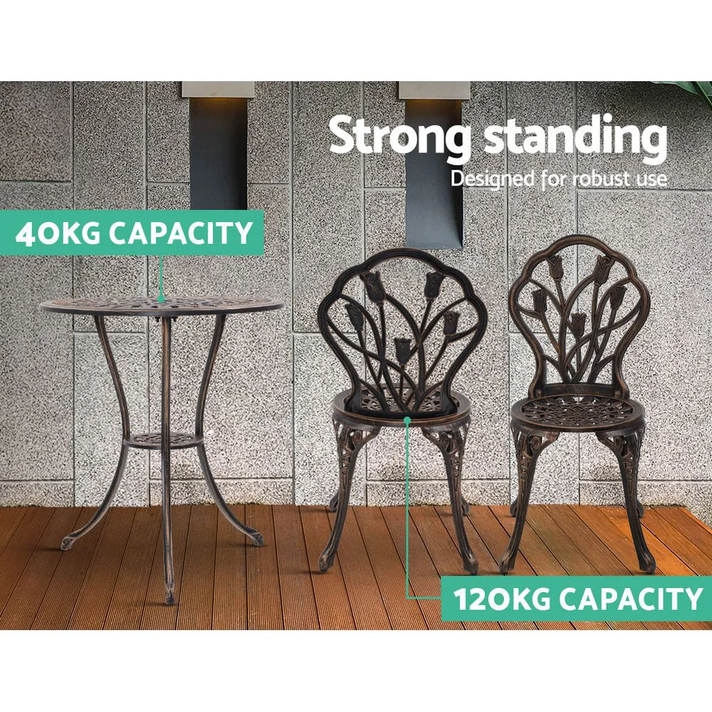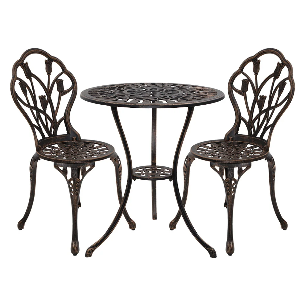 Gardeon 3PC Outdoor Bistro Set – Cast Aluminium Tulip Design, Weather-Resistant, Bronze Finish, with Parasol Hole