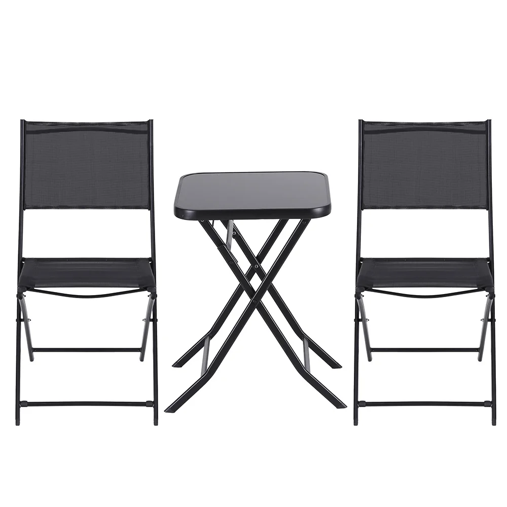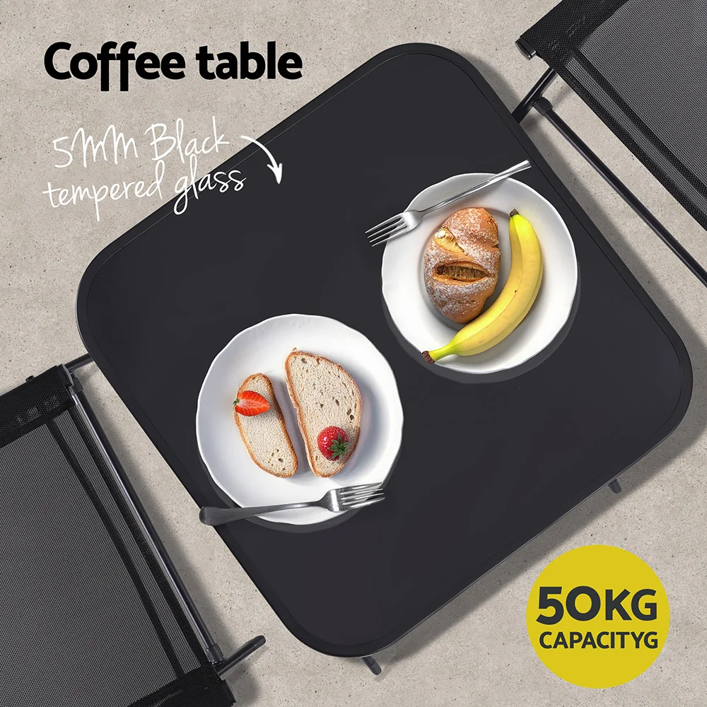 Gardeon Outdoor Bistro Set 3-Piece Folding Steel Patio Furniture, Black, Weather-Resistant, Textilene Chairs, 60cm Table
