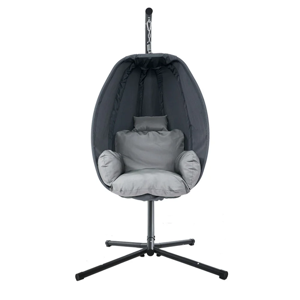 Gardeon Grey Outdoor Foldable Egg Swing Chair with 360° Rotation, UV-Resistant Canopy, and Plush Cushion, 150kg Capacity