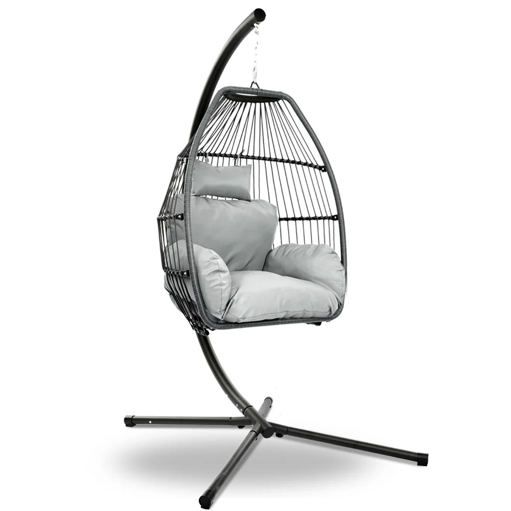 Gardeon Outdoor Hanging Egg Swing Chair, Handcrafted UV-Resistant Wicker, 360° Rotation, Grey Cushion, 150kg Capacity