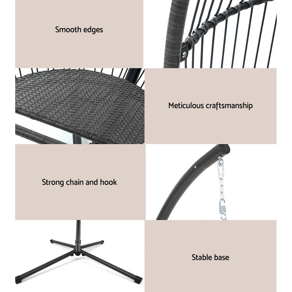 Gardeon Heavy-Duty 2-Person Hammock Chair Stand, Powder-Coated Steel, 200kg Capacity, Indoor/Outdoor, 360° Rotation