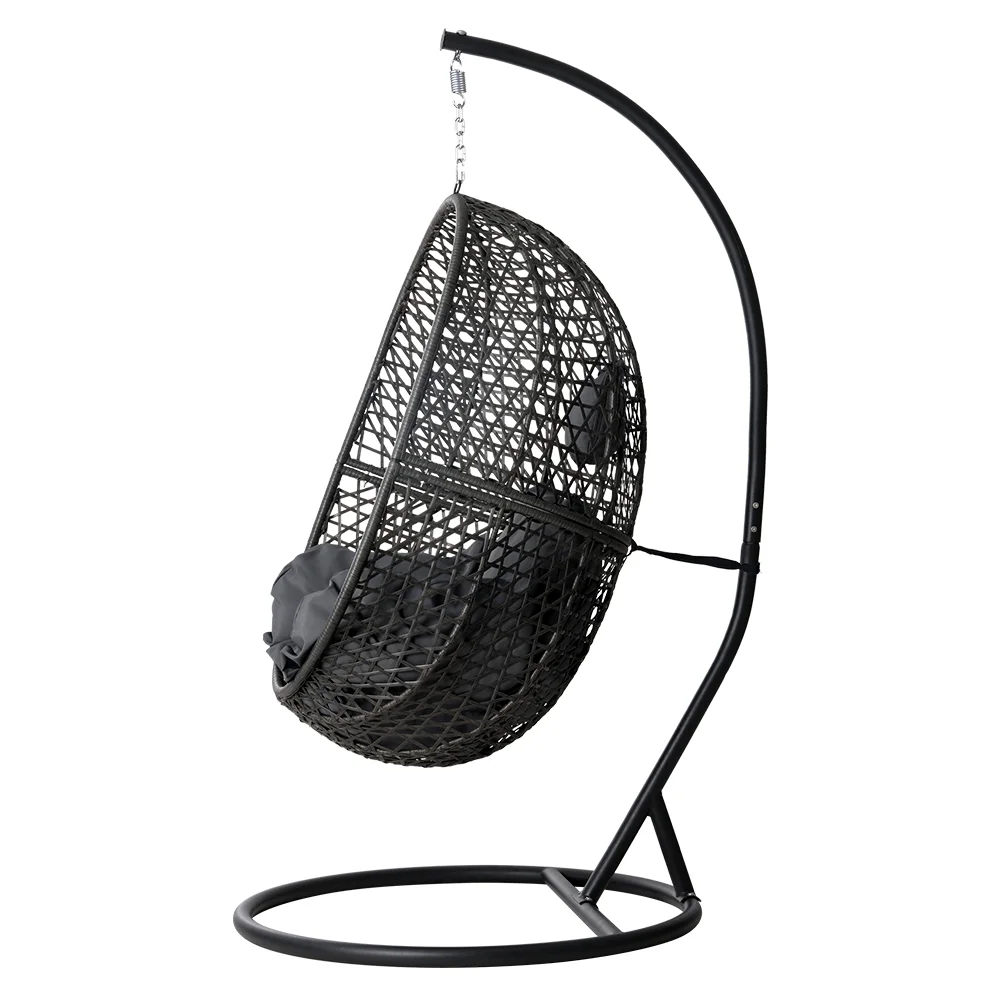 Gardeon Outdoor Egg Swing Chair - Black Wicker Rattan Pod with Stand, 360° Rotatable, 150kg Capacity, Removable Cushion