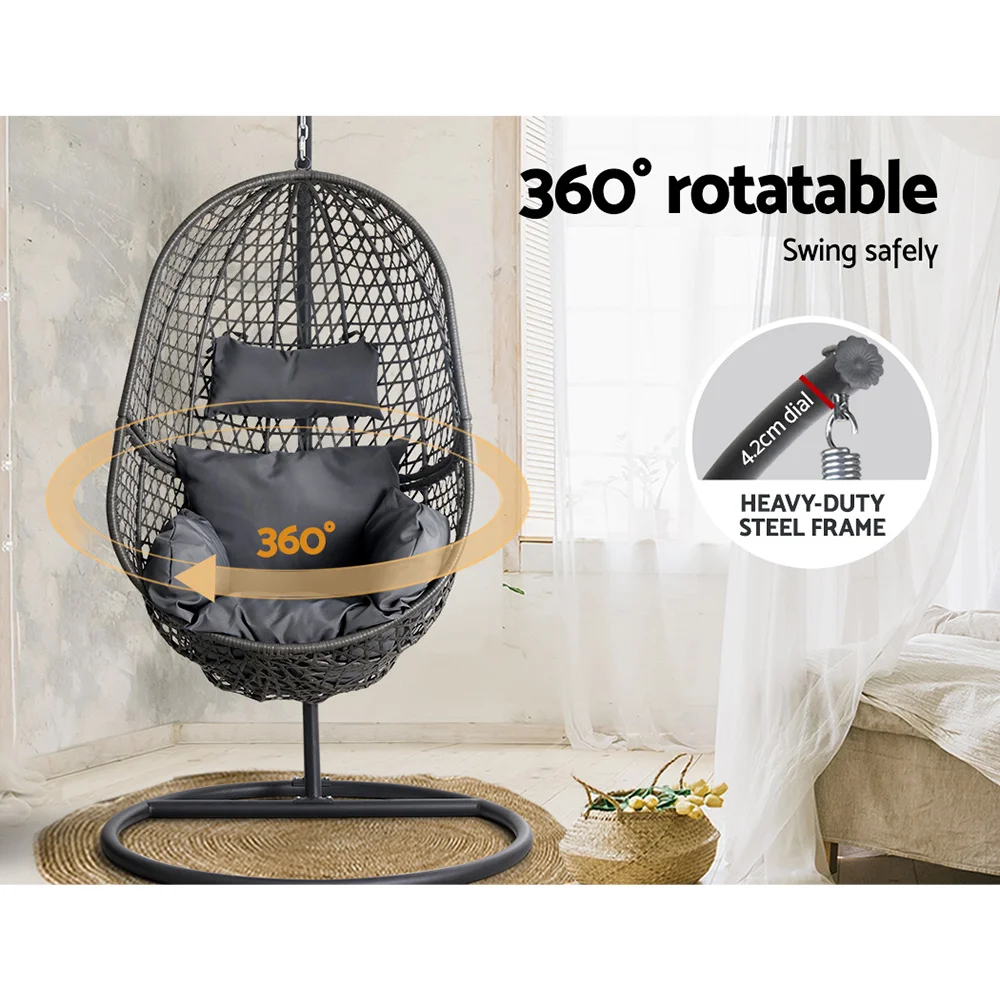 The Gardeon Outdoor Egg Swing Chair offers ultimate relaxation with its stylish design and durable construction. Perfect for both indoor and outdoor use, it features a sturdy powder-coated steel frame and weather-resistant resin wicker. The chair supports up to 150kg, ensuring stability and safety. Enjoy 360-degree rotation while lounging on the soft, removable cushion. Easy to assemble, this handcrafted piece adds a minimalist boho touch to any space. Ideal for reading or unwinding, it's a must-have for your home.