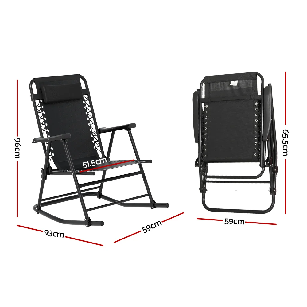 Gardeon Outdoor Folding Rocking Chair, Steel Frame, Textilene Fabric, 93x59x96cm, Lightweight, Reclining Patio Recliner