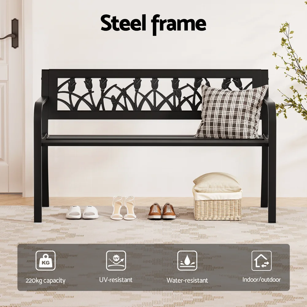 Gardeon Outdoor Garden Bench - Steel 2 Seater, Black, Rust-Resistant, 118.5cm, Indoor/Outdoor, Easy Assembly