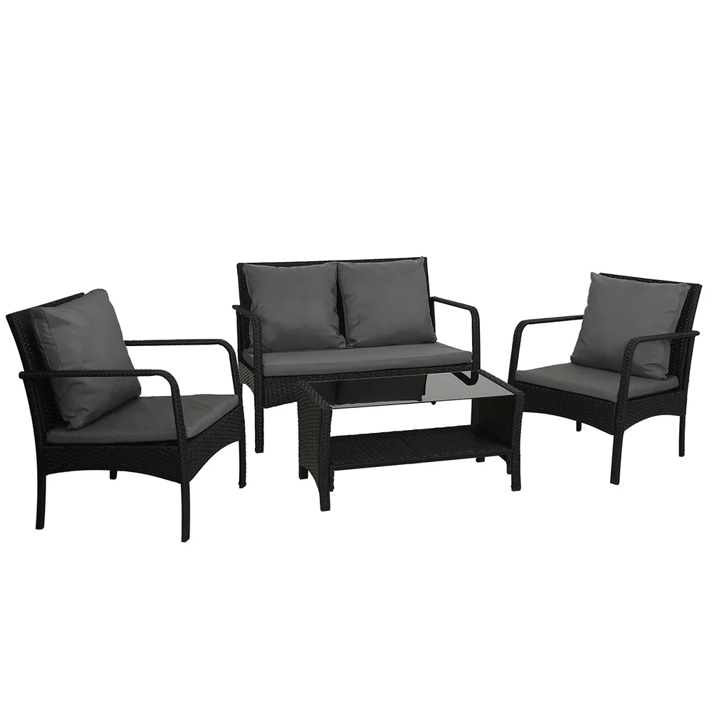 Gardeon 4-Piece Rattan Outdoor Sofa Set with UV-Resistant Wicker, Steel Frame, Cushions, and Tempered Glass Table