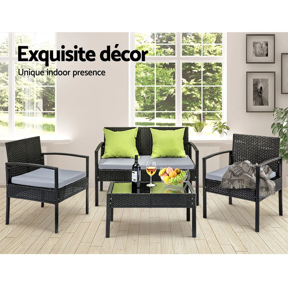 Gardeon 4-Piece Rattan Outdoor Sofa Set - UV Resistant, Powder-Coated Steel Frame, Natural Colour, Cushions Included
