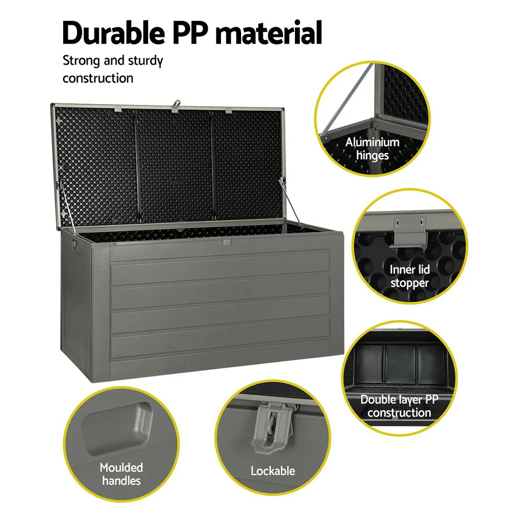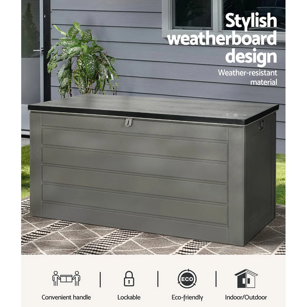 Gardeon 290L Outdoor Storage Box - Weather-Resistant, Lockable, Easy Assembly, Black - Garden Deck Shed Organiser
