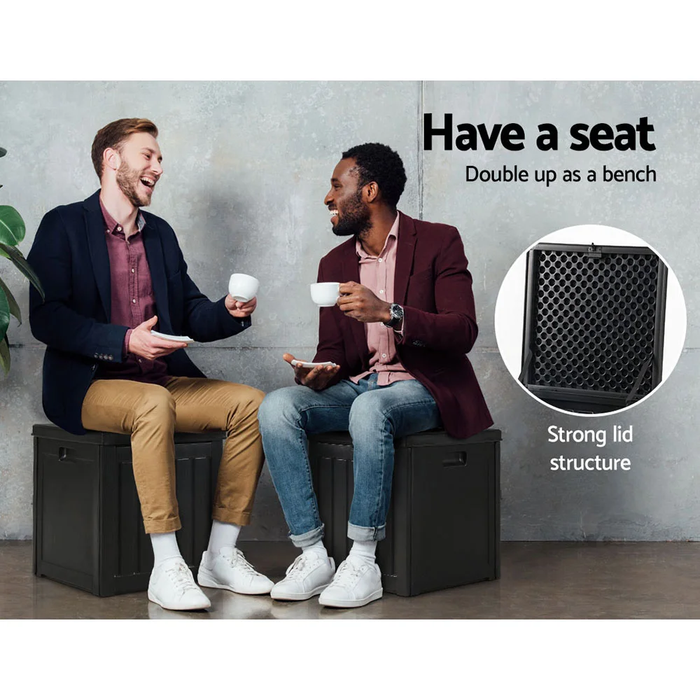 Gardeon 490L Lockable Outdoor Storage Box - Weather-Resistant PP, Bench Seat, Ideal for Tools & Toys, Black/Grey