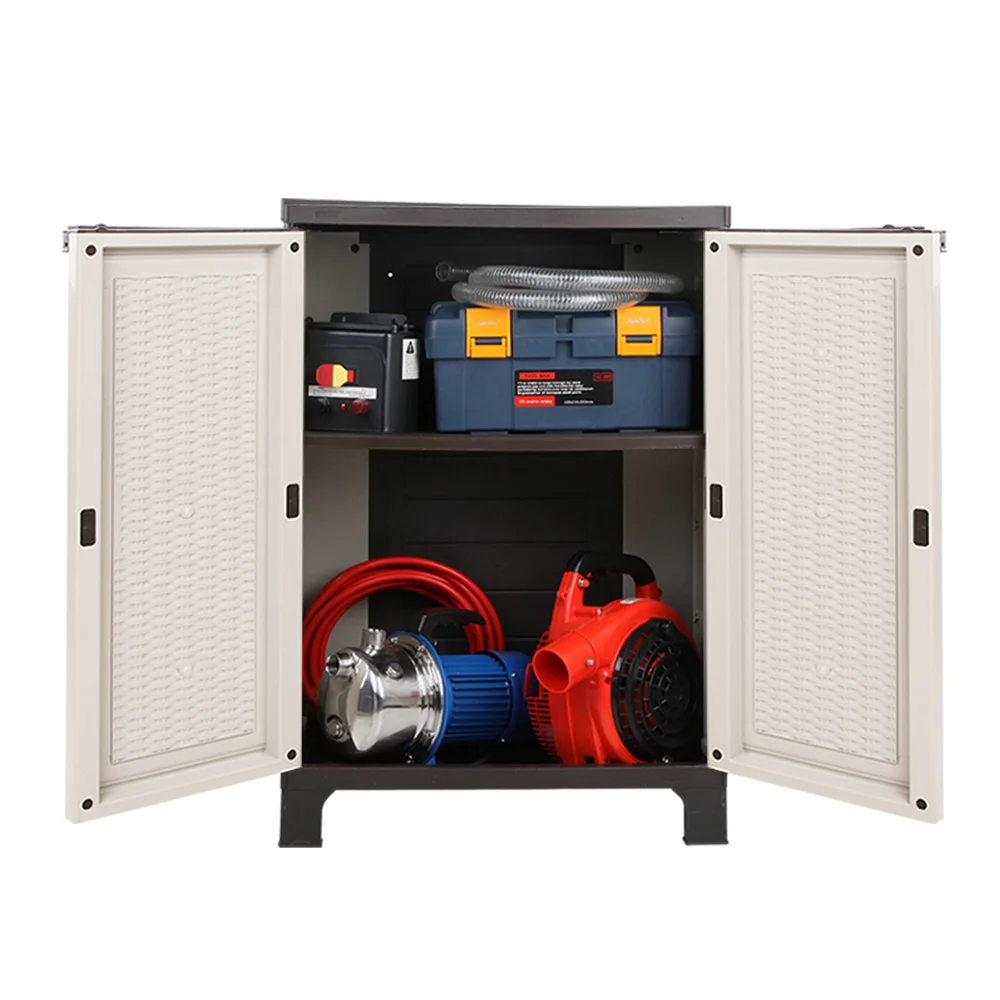 Gardeon Outdoor Rattan Storage Cabinet 92cm Beige - Lockable, Weather-Resistant, Adjustable Shelf, Premium Plastic
